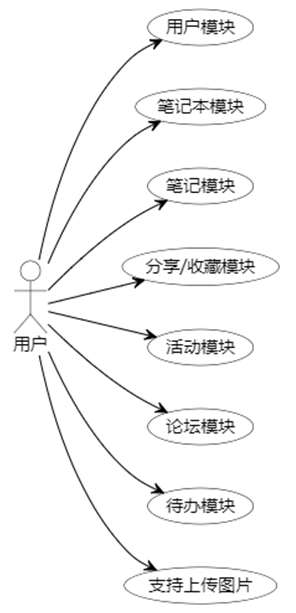 分享功能支持将笔记以链接、图片、PDF格式分享至微信、QQ、微博等社交平台。生成链接时,为每个笔记分配唯一的短链接,便于传播;生成图片或PDF则通过截图或渲染技术实现。收藏模块允许用户创建多个收藏夹,对笔记进行分类管理,支持拖拽排序和批量移动。查看收藏列表时,可按创建时间、标签、笔记类型等条件筛选。搜索功能基于全文检索技术,利用Mysql的FTS(全文搜索)模块和云端的Elasticsearch实现,快速定位用户所需笔记。功能模块图如