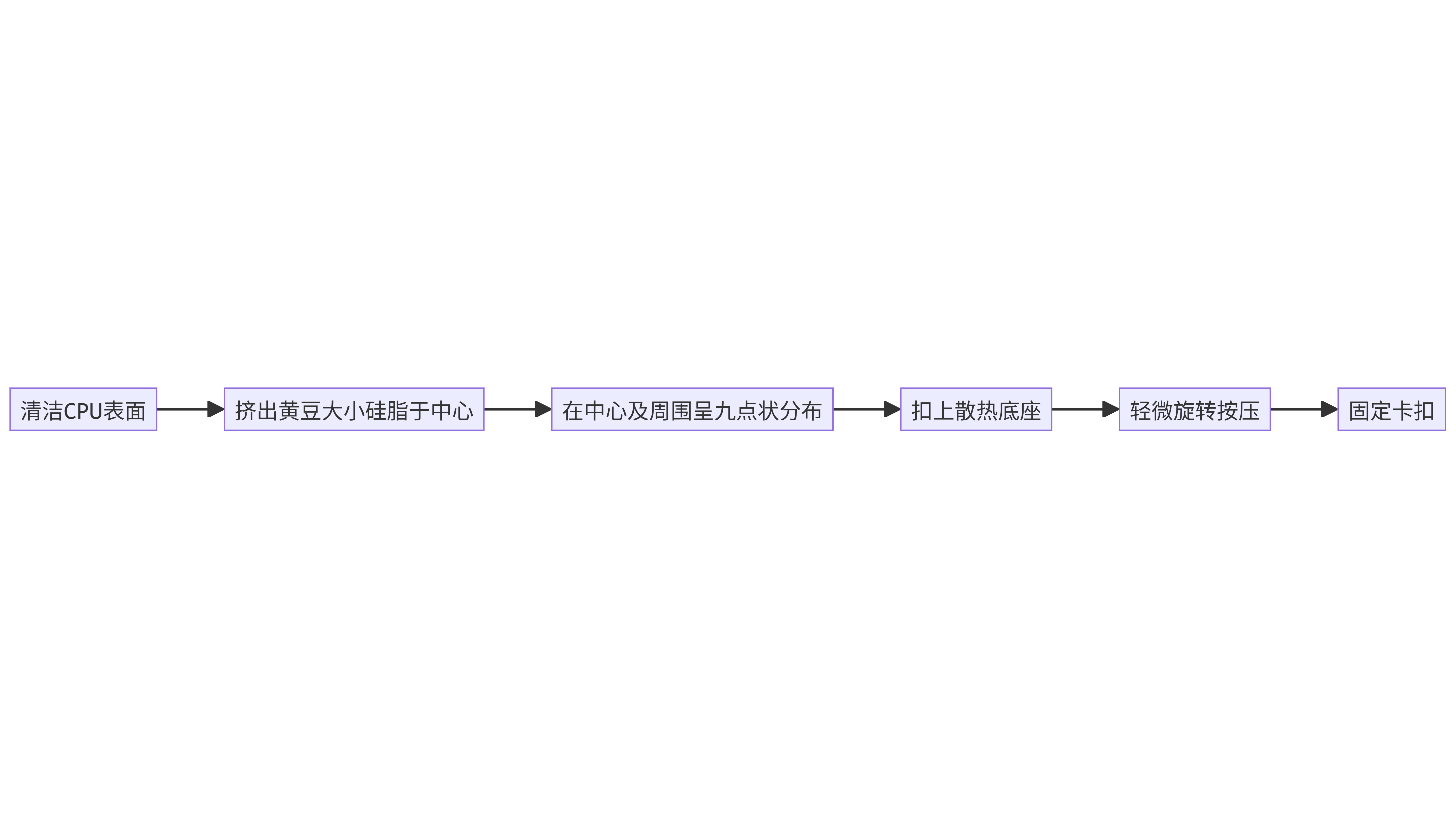 A[清洁CPU表面] --> B[挤出黄豆大小硅脂于中心]