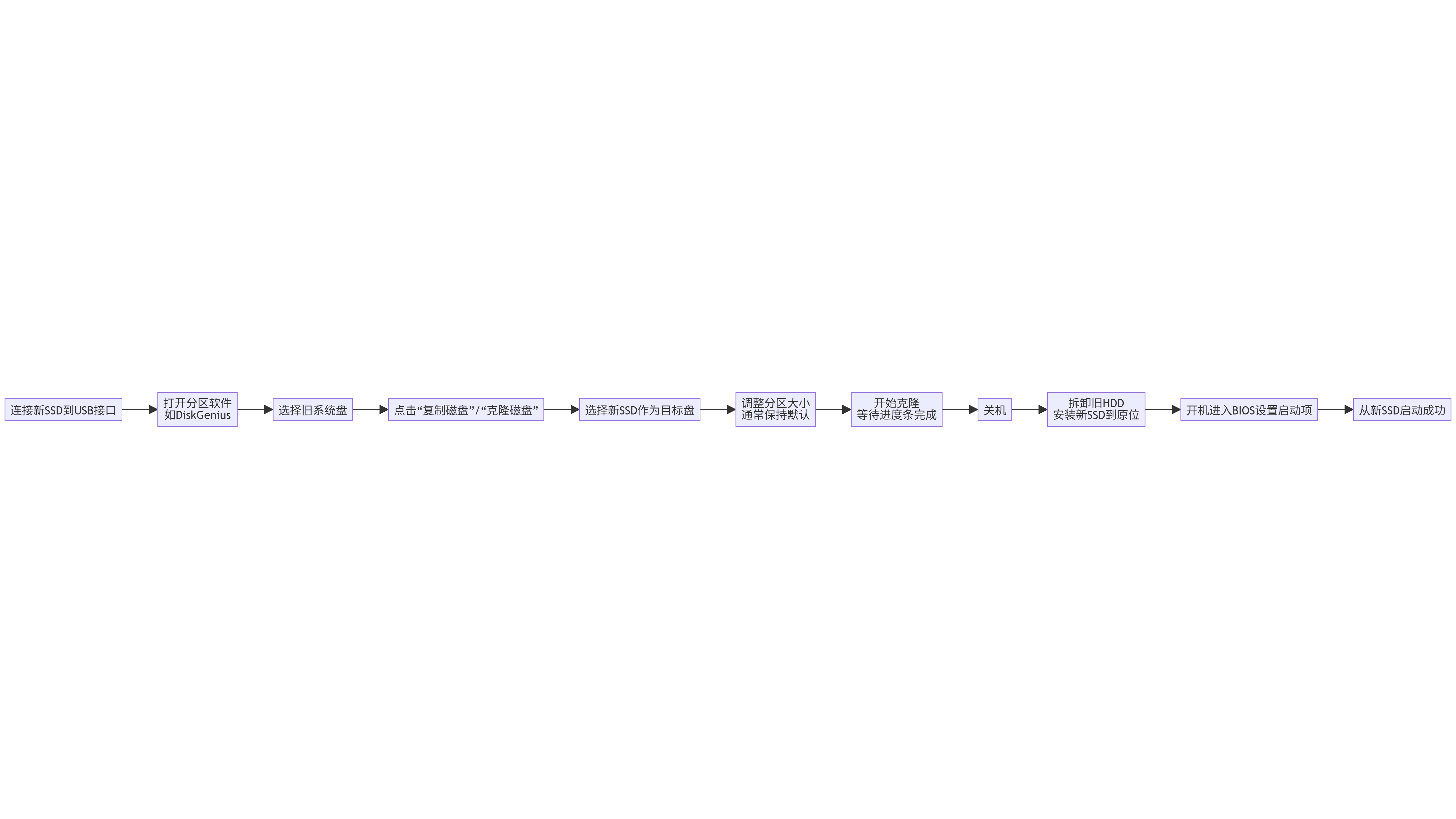 H --> I[拆卸旧HDD<br>安装新SSD到原位]