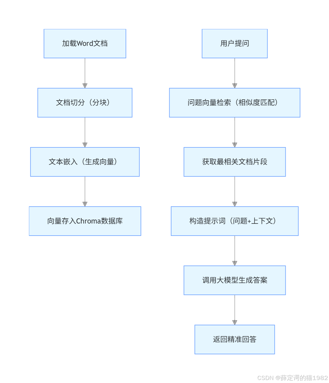 - 本文基于 LangChain + 通义千问实现了本地化 Word 文档问答系统,核心流程为 “文档加载→切分→嵌入→检索→大模型生成答案”;