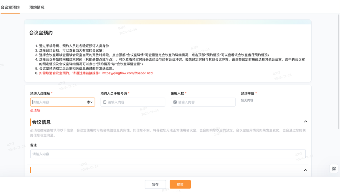 点击免费试用👉轻流会议室预约模板