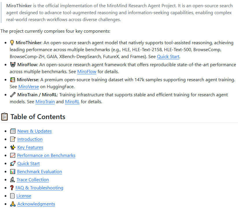 | 🔗 项目地址 | https://github.com/MiroMindAI/MiroThinker |