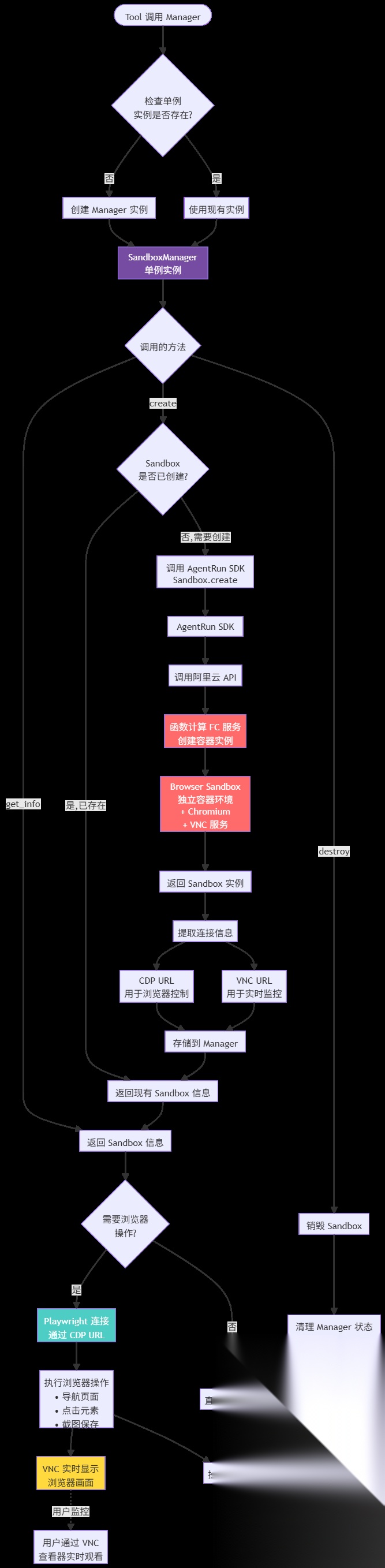 - vnc_url:用于实时查看浏览器画面(可通过sandbox.get_cdp_url() 获取)