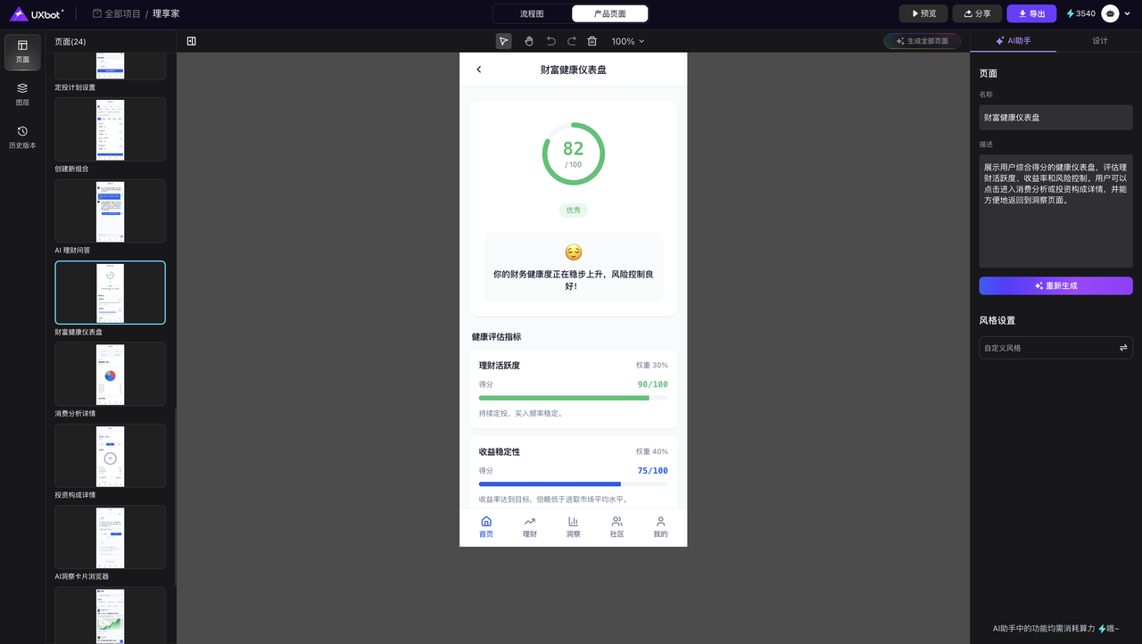 视觉设计精度高,生成的高保真原型可直接用于投资人汇报、产品演示等正式场景;
