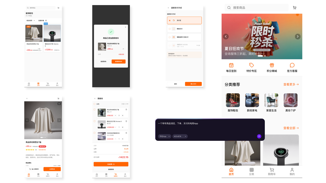 生成效率高,适合快速输出移动端产品的初始原型方案。