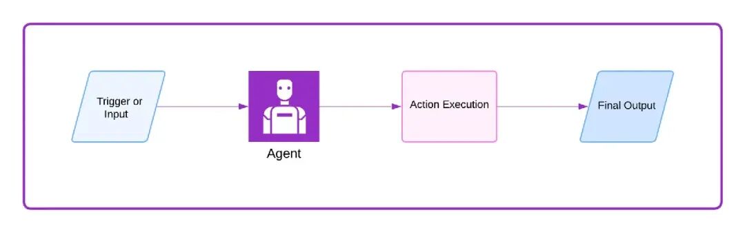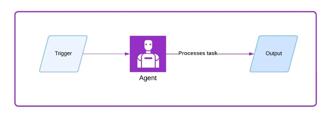 其最简形式为:单智能体系统响应触发器,处理任务,并返回输出。不涉及记忆、规划或外部交互,仅包含:输入、推理和响应。此模式适用于简单自动化或原型验证,并有助于在构建智能体应用时检验工作流和想法。