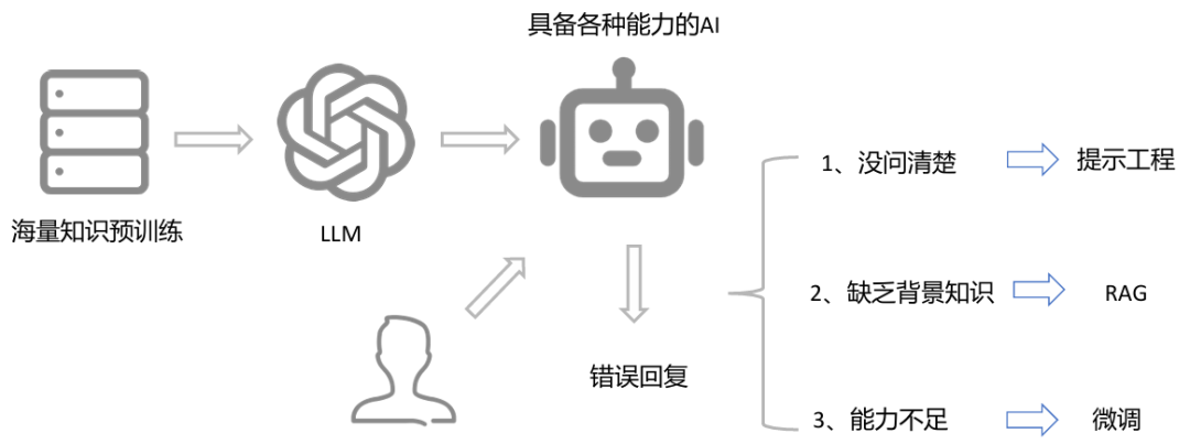 提示工程 (Prompt Engineering):不改变模型,通过优化输入(Prompt)来引导输出。一般用于: