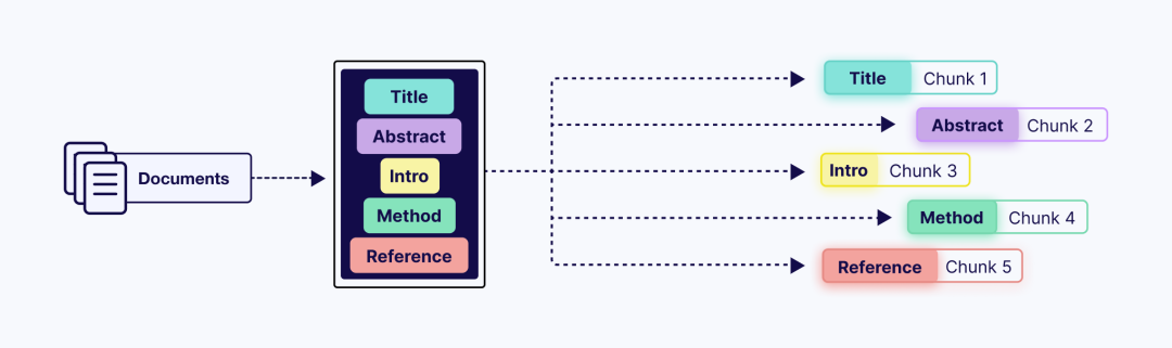 这种方法适应文档的结构,尽可能保持结构相关的单元在一起。它避免了固定大小分块的突然切断,并确保分块保留其原始格式的结构。