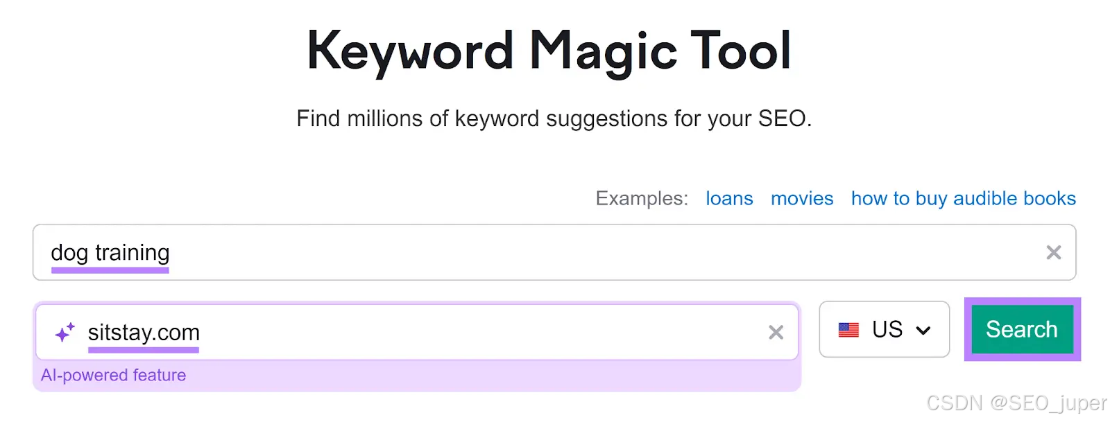 输入你的目标词、主页网址和目标位置。然后,点击“搜索”。