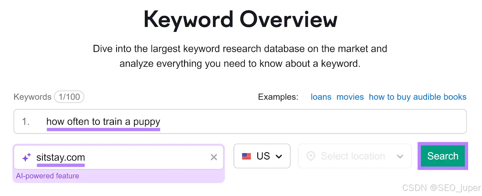 另一种查找目标查询意图的方法是使用Semrush的关键词概览。