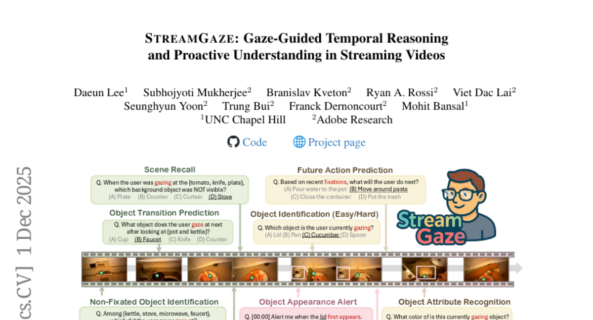 如果有一台设备能够准确读懂你的眼神,知道你在看什么、想什么,甚至能预测你下一步要做什么,这听起来是不是像科幻电影里的情节?现在,这个看似遥不可及的技术正在成为现实。来自北卡罗来纳大学教堂山分校和Adobe研究院的团队,由李大恩(Daeun Lee)、苏博乔提·穆克尔吉(Subhojyoti Mukherjee)等研究人员组成的国际团队,在2024年12月发表了一项突破性研究,创建了世界上第一个基于眼神追踪的流媒体视频理解基准测试系统STREAMGAZE。这项研究发表在计算机视觉领域的顶级学术期刊上,标志着人工智能在理解人类视觉注意力方面迈出了重要一步。