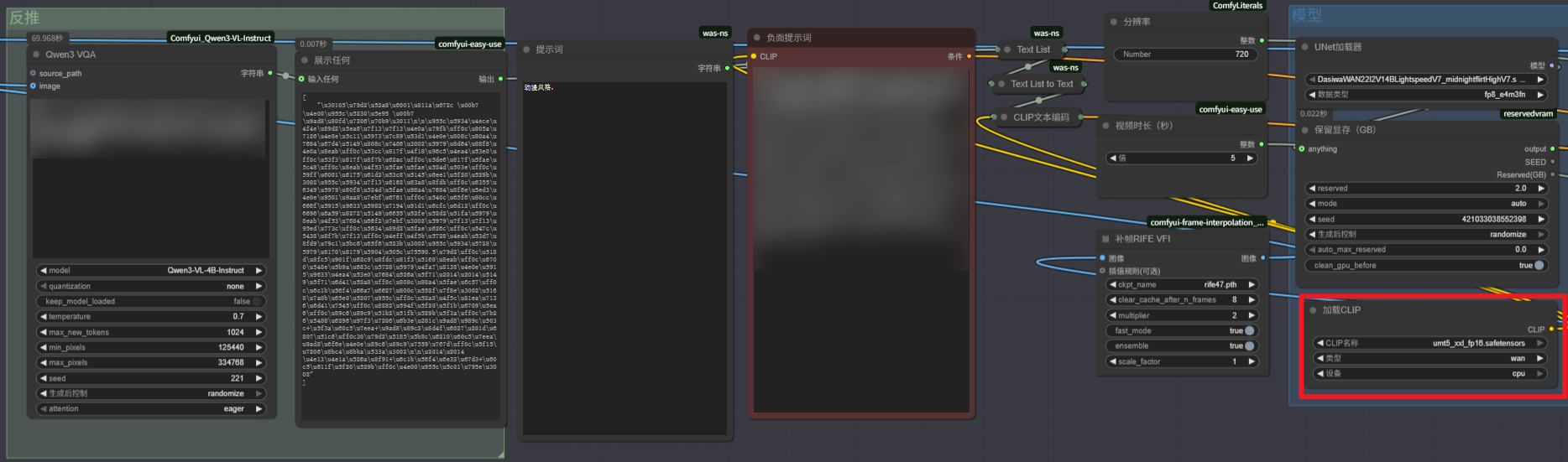 图片中出现CLIP模型加载报错,一般来说,负责文本编码的CLIP模型并不会占用太大显存,但在这里出现了OOM报错,很大可能与其之前的数据流输入有关。回看CLIP模型前的Qwen3 VQA反推出的结果是Unicode编码,而非正常解析后的文本。一定注意工作流中不正常的结果。故出现问题的很可能是Qwen3 VQA的反推节点,导致CLIP运算显存暴涨而出现OOM报错。