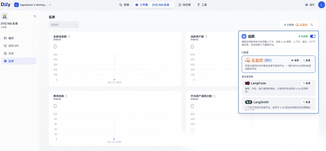 步骤三:查看 Dify 应用监控数据
