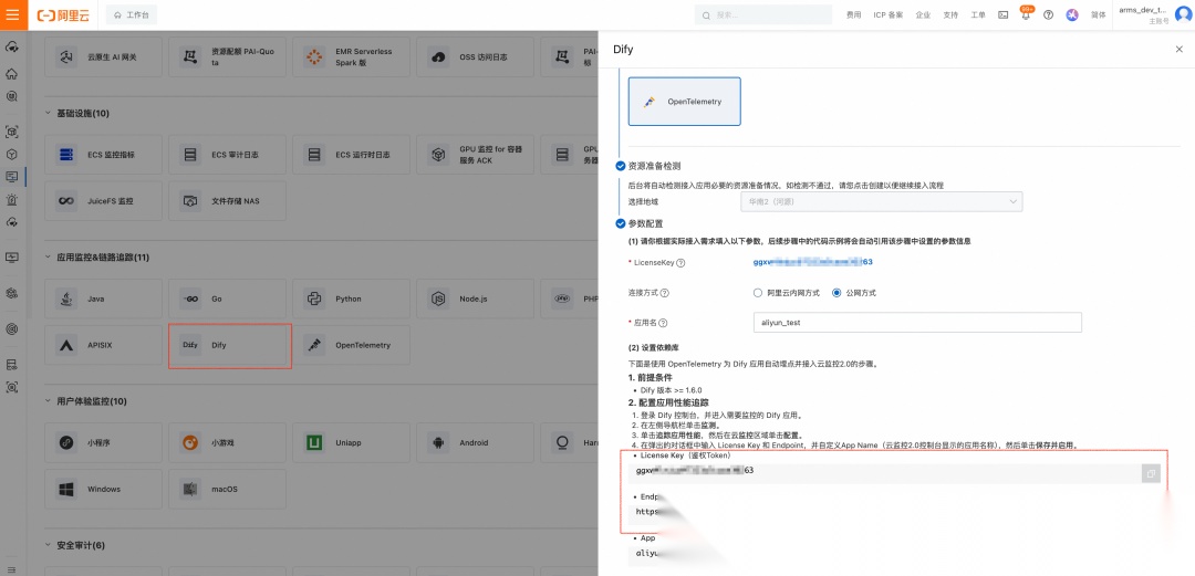 https://help.aliyun.com/zh/arms/application-monitoring/user-guide/connect-a-dify-application-to-arms-application-monitoring (步骤五)