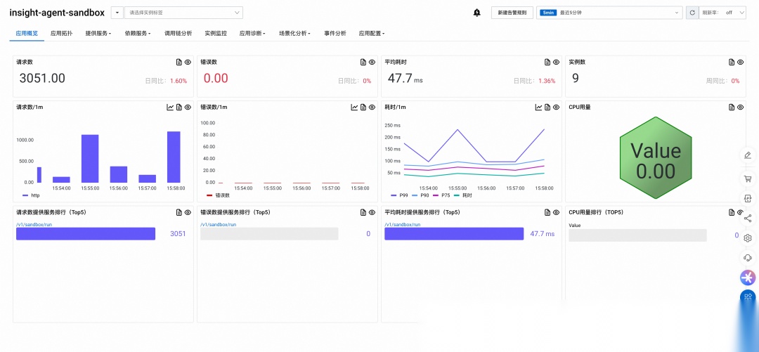 在应用列表页面进入dify-sandbox应用,监控详情如下: