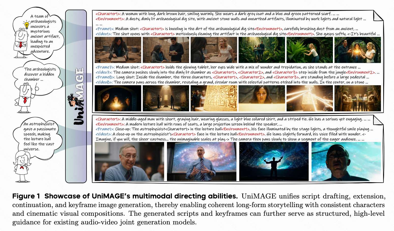 UniMAGE 旨在弥合用户提示与结构化剧本之间的鸿沟,从而使非专业用户能够利用现有的音视频生成模型,制作出长文本、多镜头影片。