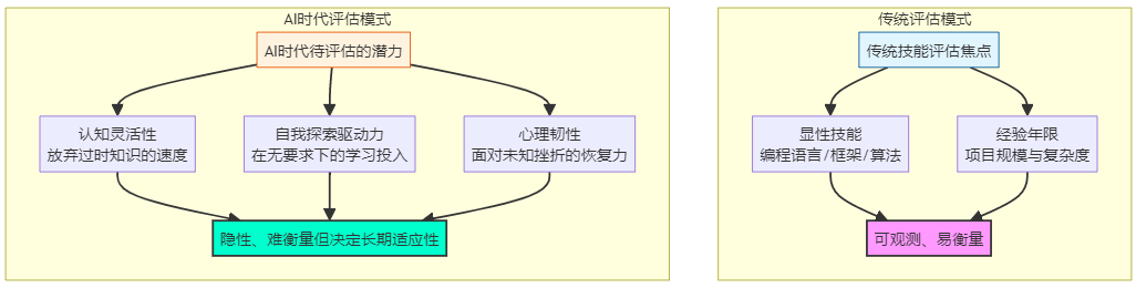 这个现象揭示了一个尖锐的悖论:我们曾赖以成功的、基于高学历和深厚经验的传统人才选拔体系,在AI带来的指数级技术变革面前,正在系统性失灵。 这并非个例,而是整个技术行业正在经历的“认知重构”阵痛。