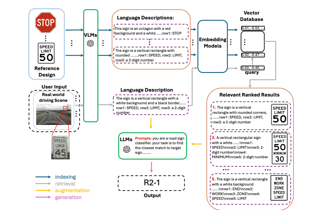 SignRAG 是建立在 RAG 之上的零样本交通标志识别系统。它使用视觉-语言模型来描述标志图像,从向量数据库中检索相似的标志设计,然后让 LLM 对候选标志进行推理以识别正确的标志,无需进行特定任务的训练。
