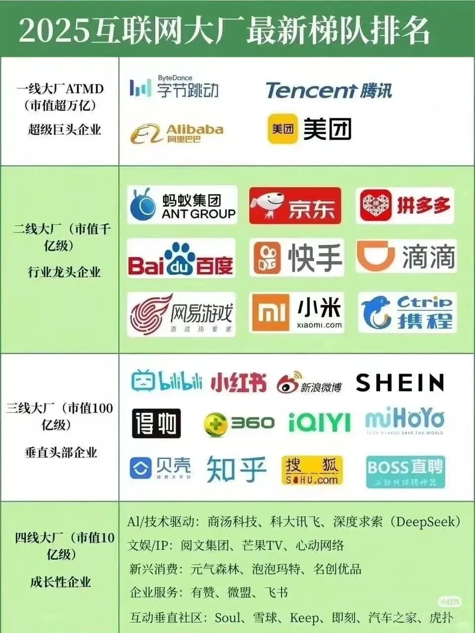 要想了解2025互联网大厂校招薪资情况,先来看下图-《2025互联网大厂最新梯队排名》