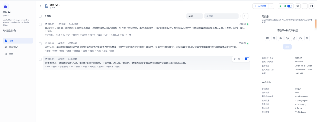 点击前往文档,可以看到文档已经被分段处理。