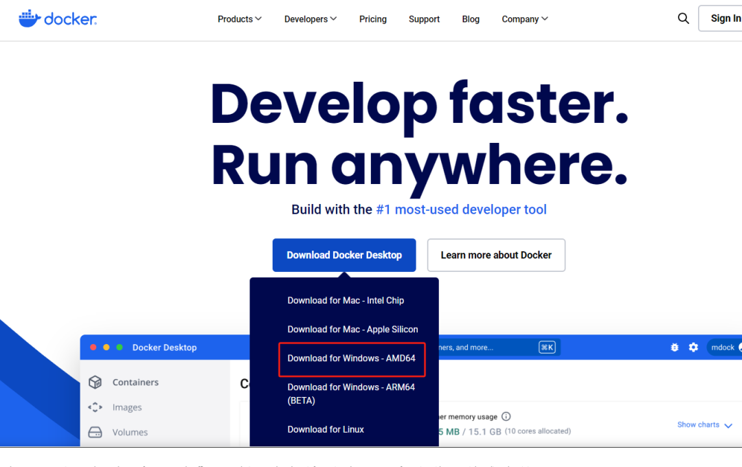 首先在docker网站 https://www.docker.com/ 下载docker
