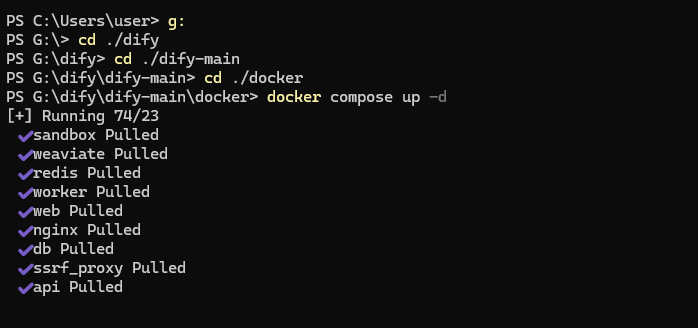 docker会拉取dify进行下载