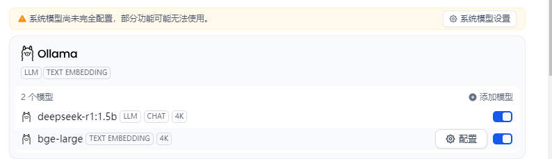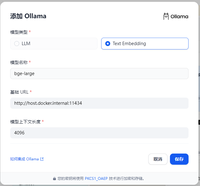 再继续添加Text Embedding。这是为知识库添加bge-large模型