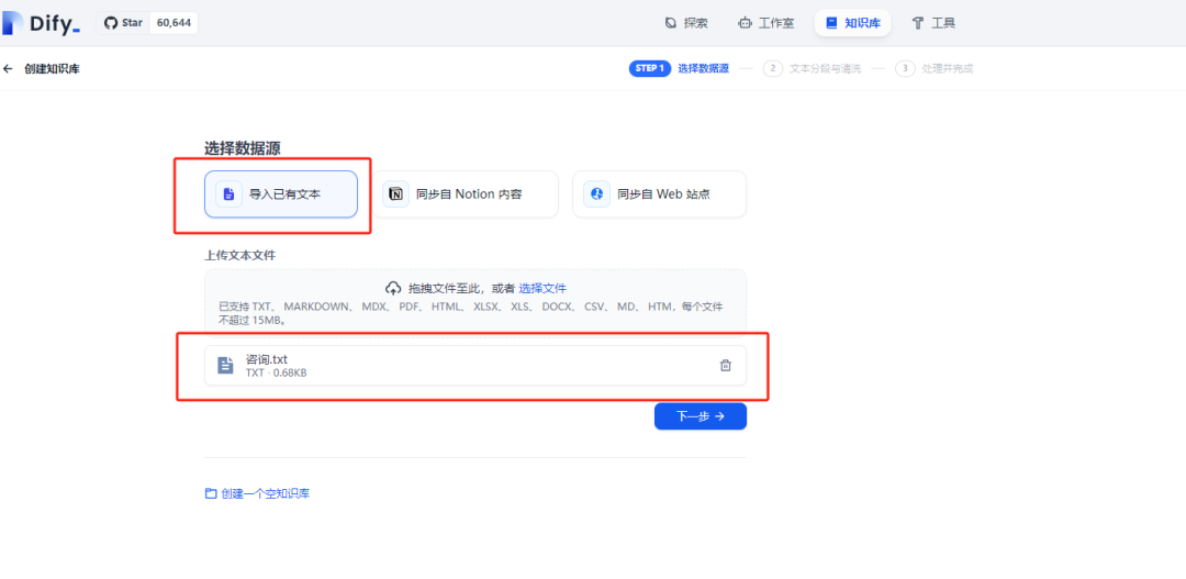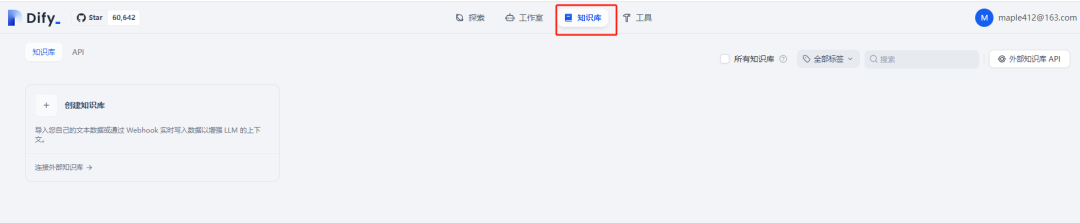 来到Dify的主界面,点击知识库。创建新的知识库
