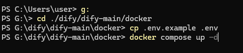 windows进入powershell(不是CMD)。进入dify解压包下面的docker目录,分别执行下面两条命令