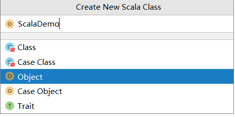 输入 Scala 源文件的名称,并选择 Object