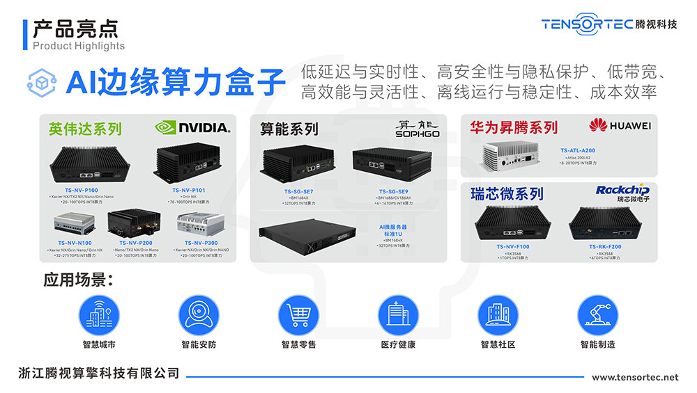 公司核心团队来自华为、中兴,基于英伟达、高通、华为等市场主流AI算力芯片,配置1-500TOPS算力范围的丰富产品线,专注于构建“感知、决策、控制”一体化边缘智算平台。通过自主研发的AI加速引擎与分布式调度系统,为工业机器人、特种车辆、智慧能源等20+行业提供低时延、高可靠的智能决策中枢,产品覆盖中国、中东、印度、南美、东南亚等全球多个地区。