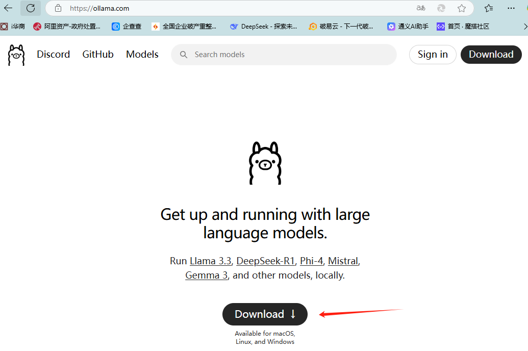 可以直接在浏览器中输入地址https://ollama.com/,选择对应操作系统进行下载。