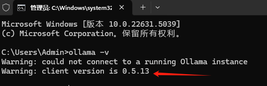 下载并安装完毕后,可以在本地打开命令提示符(win+R,输入cmd也可打开),并输入ollama -V,检查是否安装成功,若显示对应版本则代表安装成功。