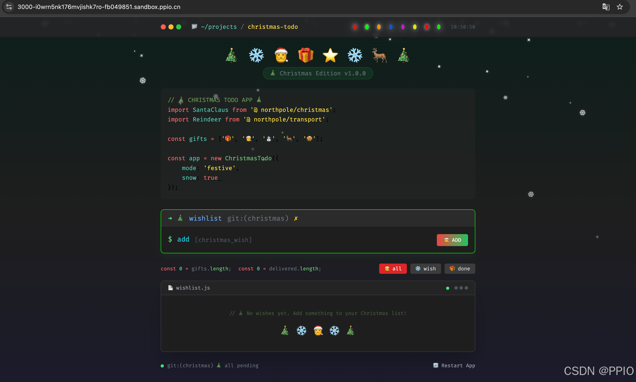 生成结果:圣诞版 Todo 应用,雪花飘落特效
