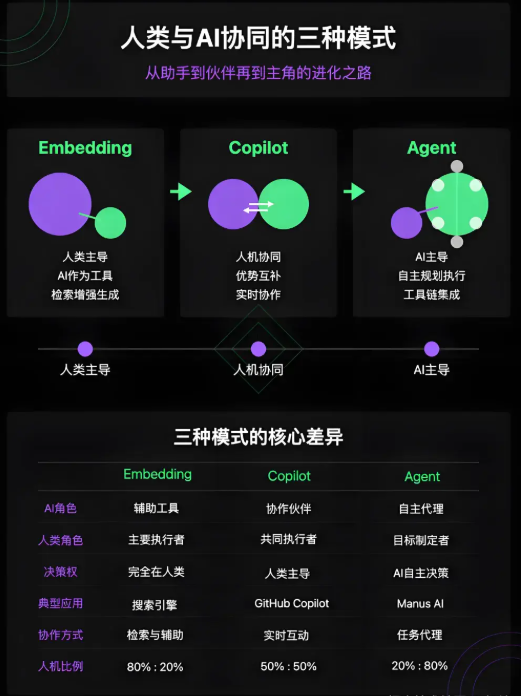 Embedding 模式是最基础的协作模式,这一阶段的典型特征是:人类承担核心任务,AI仅提供辅助支持。