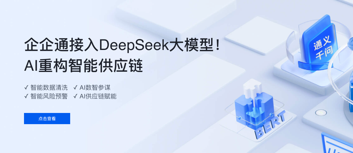 - 企企通融入AI大模型能力,推出智能数据清洗、AI数智参谋、智能风险预警等功能,实现快速智能寻源比价、供应商精准匹配,辅助采购决策。