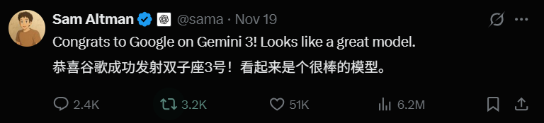 甚至连“奥特曼”本人都亲自发帖祝贺,这排面可以说是直接拉满🔥