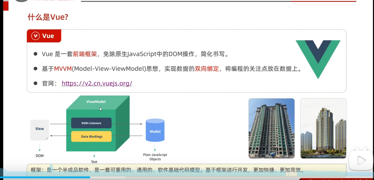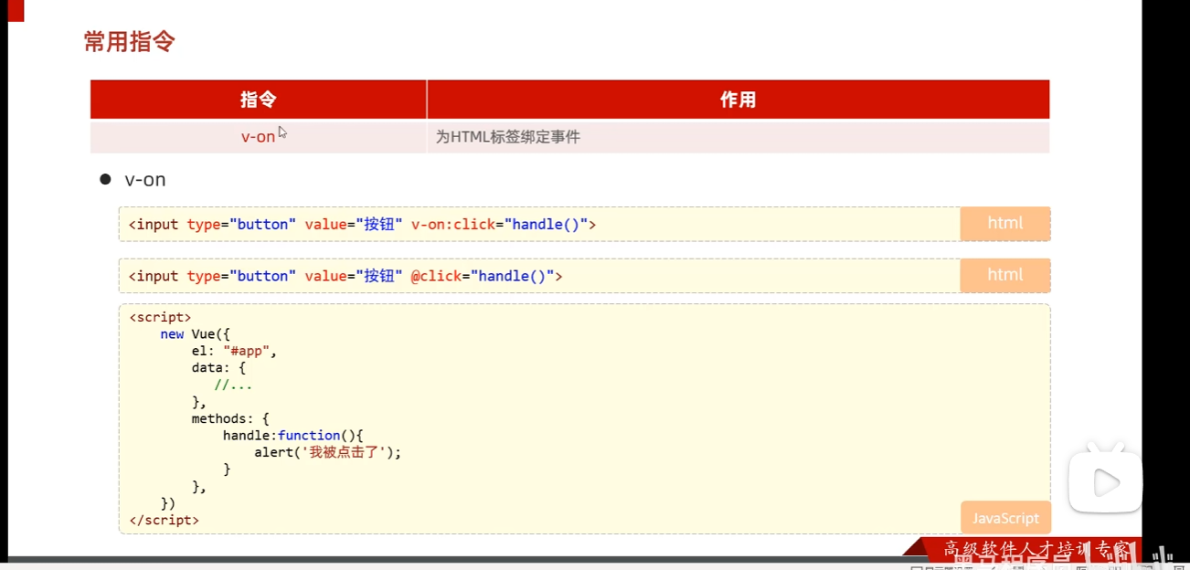 首先vue 本质上是一个javascript库,所以要用script标签括起来,具有双向绑定的特点。