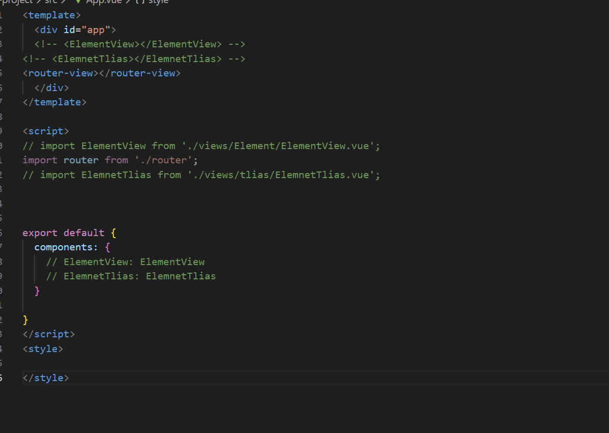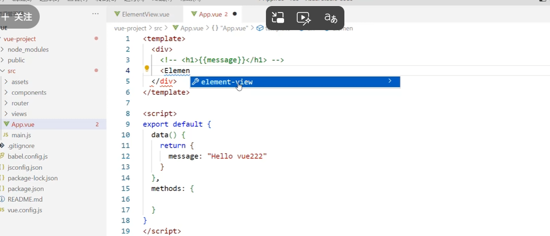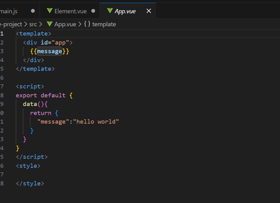 页面,以后我们写的组件基本都是在views里面,所以我们需要在app.vue根组件里面引用views文件夹里面的element.vue