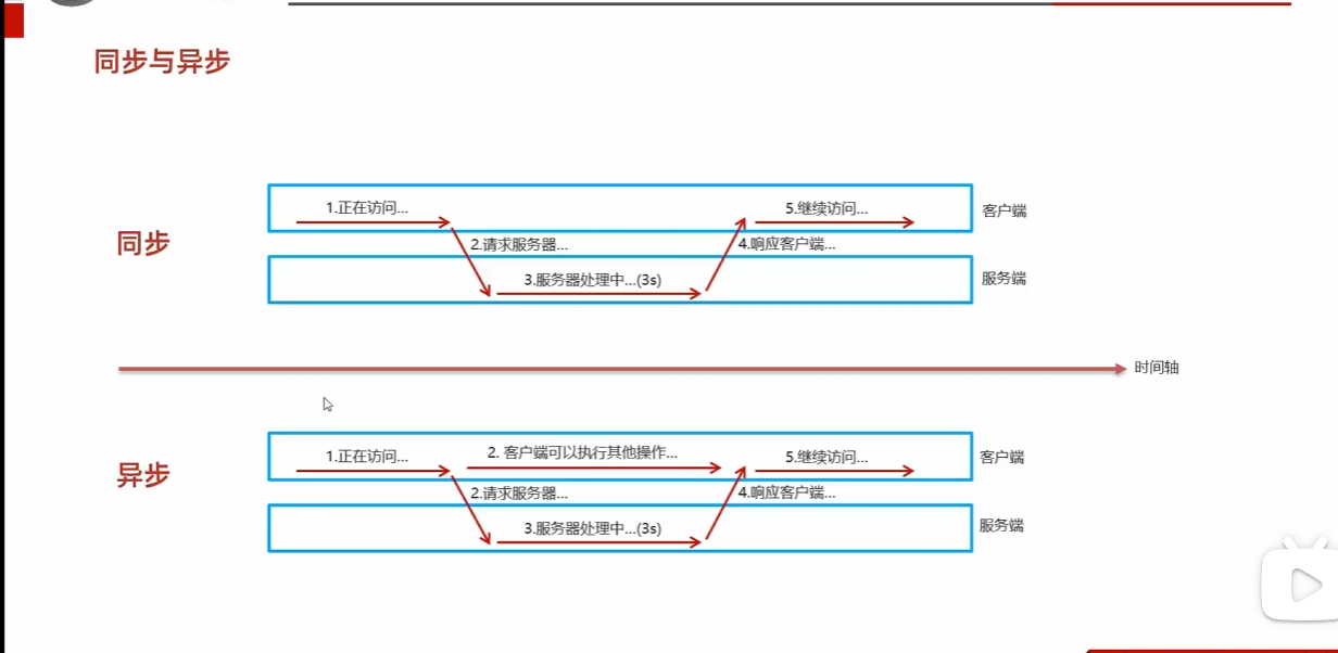 同步就是访问一个服务器,必须要等待服务器的响应,才能做接下来的操作