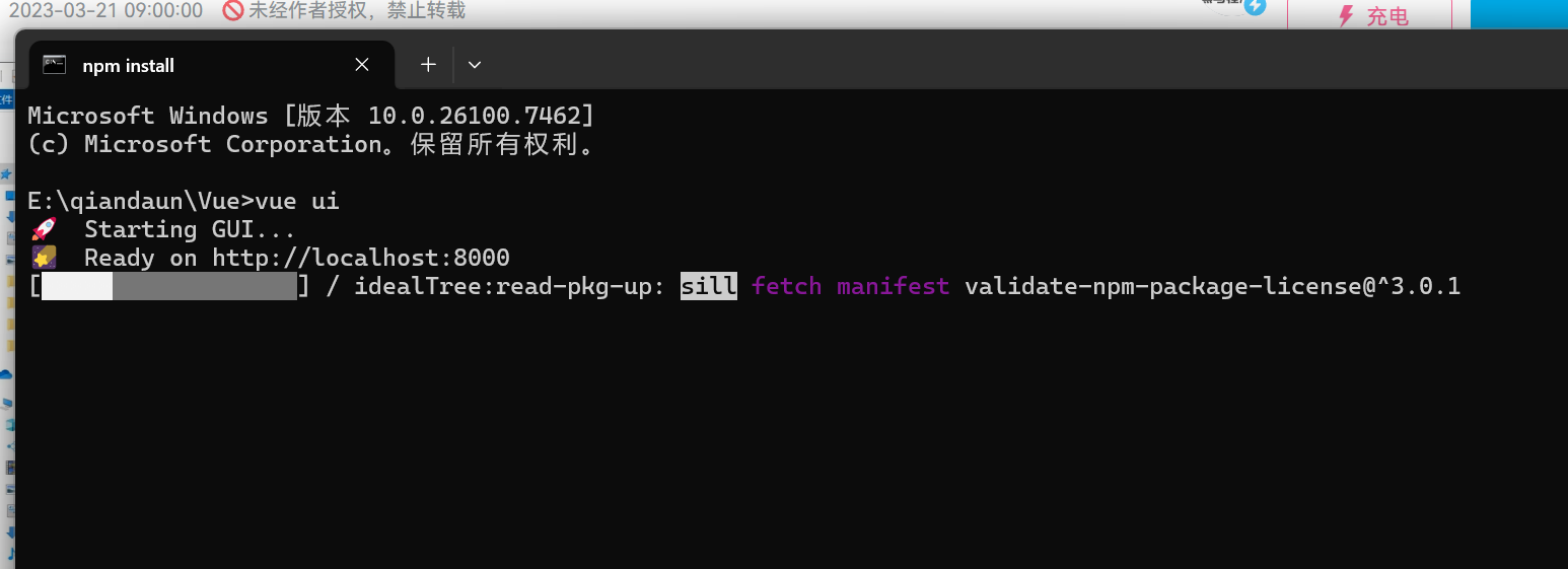 当我们点击创建一个项目时候,你会发现命令行正在联网下载
