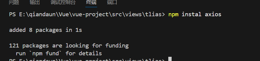 在这种工程化的前端开发环境,我们使用axios不再需要导包了