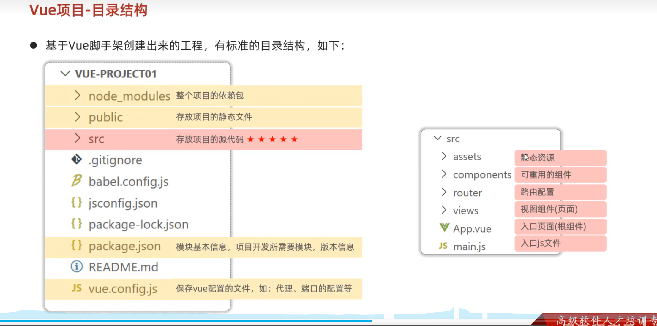 一般是通过一句话概括: 你需要依赖 Node.js 环境来运行 Vue-cli 工具,然后用这个工具快速生成一套标准的 项目脚手架,以此开始你的开发工作。