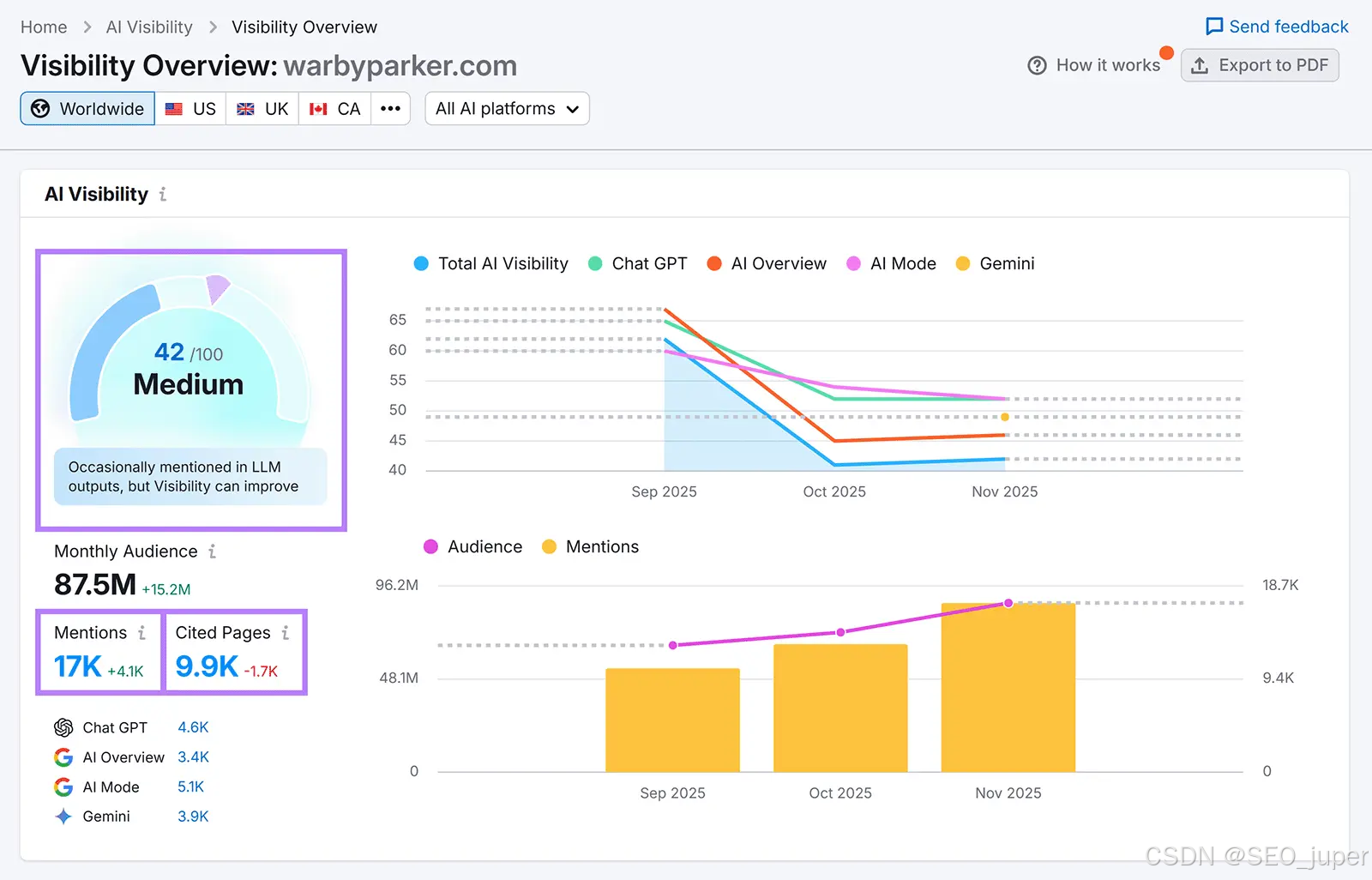 监测你的品牌和内容出现在AI生成答案中的频率,为未来增长设定基准。