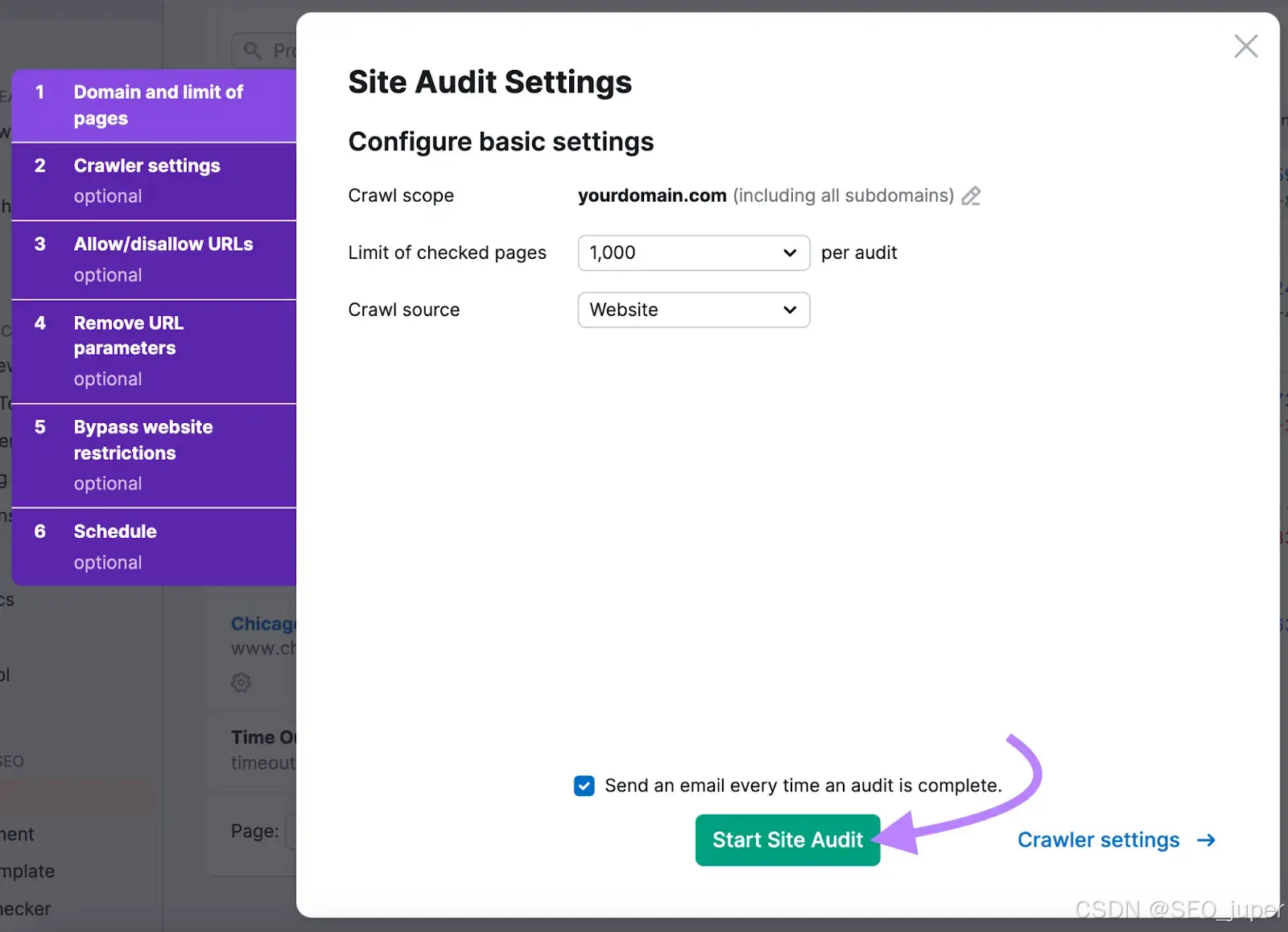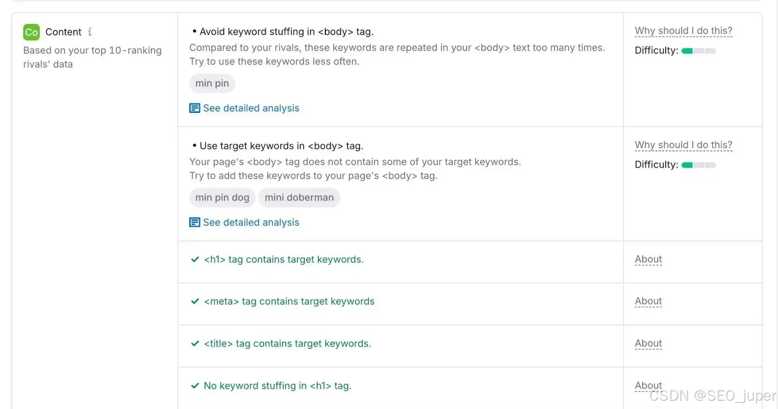 如果你的网站很大,手动分析每个页面会非常耗时。Semrush的页面内SEO检查器可以大规模审核你的页面内元素。