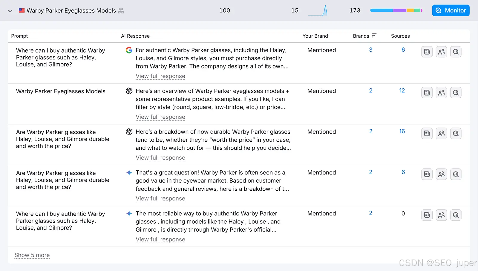 看看你的品牌是否被提及,它的突出度,以及上下文是否准确代表你或你的产品。