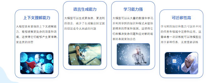 大模型的设计和训练旨在提供更强大、更准确的模型性能,以应对更复杂、更庞大的数据集或任务。大模型通常能够学习到更细微的模式和规律,具有更强的泛化能力和表达能力