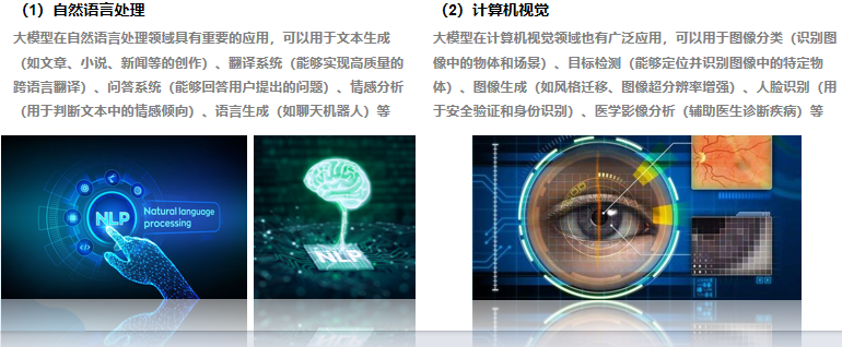 大模型的应用领域非常广泛,涵盖了自然语言处理、计算机视觉、语音识别、推荐系统、医疗健康、金融风控、工业制造、生物信息学、自动驾驶、气候研究等多个领域