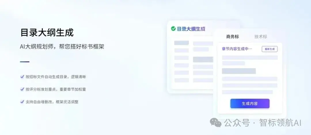 如今,AI 技术的发展为投标工作带来了新的解决方案。以智标领航 AI 编标工具为代表的智能化产品,通过合规化的技术手段,将投标过程中的重复性工作智能化、高效化,让团队能够聚焦核心环节,实现投标效率与质量的双重提升。