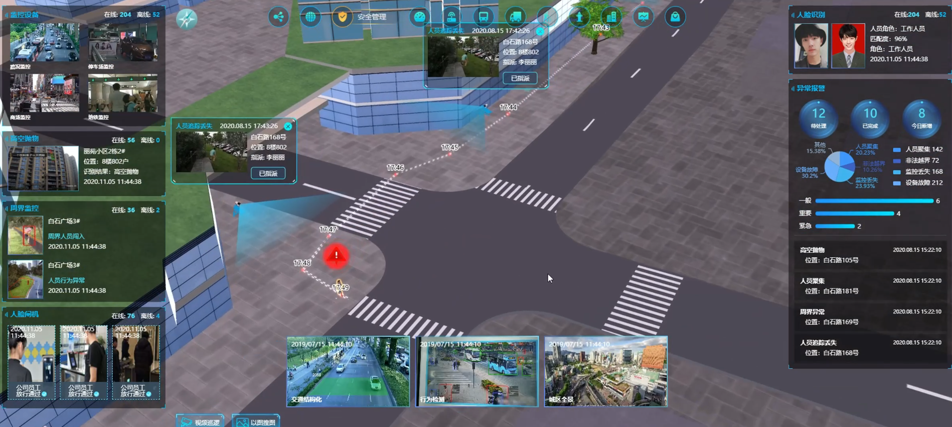 - 异常事件分析:对厂区不同区域、车间等构建虚拟电子围栏,结合智能监控算法或定位标签,实现入侵告警,事件告警,行为分析等多样的分析告警